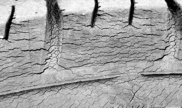 通常,如果花纹上面,有这种无数的小裂缝,都皱开来的时候,基本上不管这个轮胎有没有磨损的很厉害,都要考虑更换这个轮胎了。