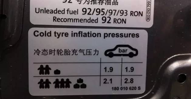 标准气压通常可以在以下地方找到:车辆用户手册,驾驶室车门(B柱附近)旁边的标签,车门后缘边框上,也有些位于油箱盖上。