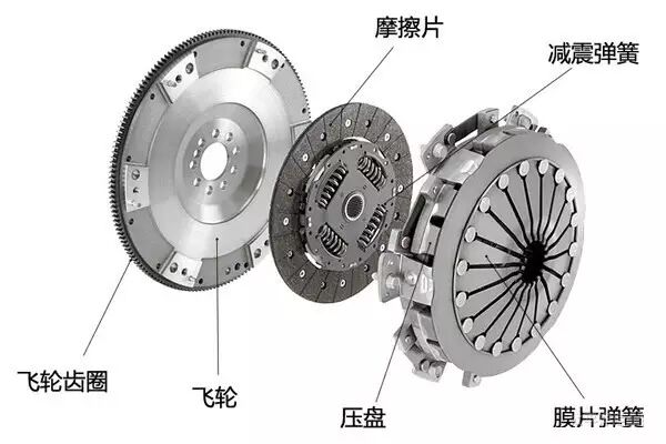 为什么需要离合器呢?顾名思义,离合器就是利用“离”与“合”来传递动力。对于汽车使用来说,只要不熄火,则发动机始终在旋转,而车轮则不会。要使车辆停止而不损坏发动机,车轮需要以某种方式与发动机断开。 离合器就是这么一个动力传递的“开关”,它位于发动机和变速器之间的飞轮壳内,离合器的输出轴就是变速器的输入轴。在汽车行驶过程中,驾驶人可根据需要踩下或松开离合器踏板,使发动机与变速器暂时分离和逐渐接合,如图4所示。
