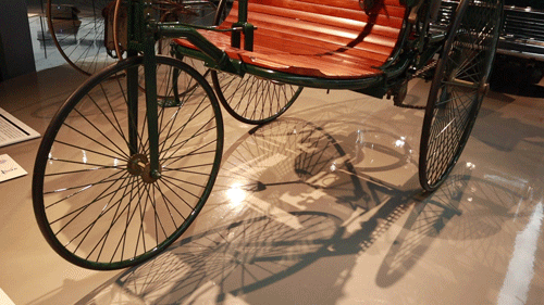 提到这家博物馆的干货,不得不提这辆位于博物馆一层的奔驰三轮车——奔驰一号,它就是名副其实的“世界第一辆汽车”。