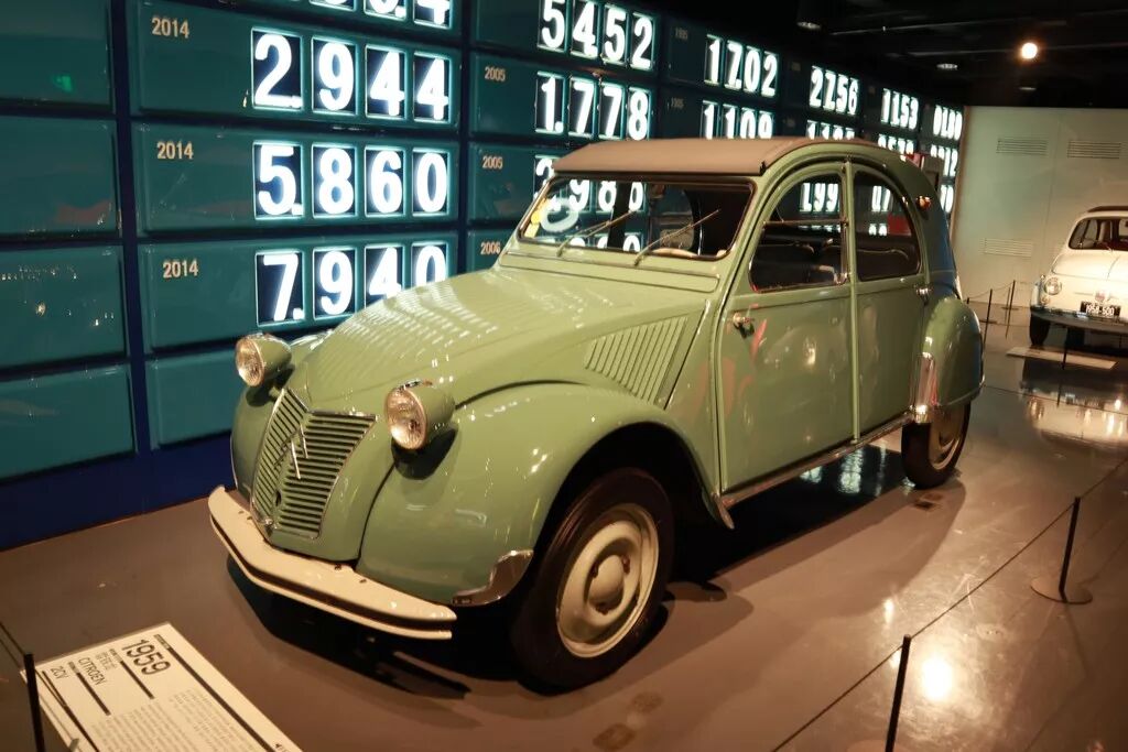 雪铁龙2CV轿车昵称“丑小鸭”,本为法国农村设计生产,用来“干糙活”,但是因其节油、廉价的特点成为了“国民车”,并从1948年起,持续生产到了1990年(经历两次石油危机)!雪铁龙2CV和“甲壳虫”、“MINI”并称世界三大著名微型车。
