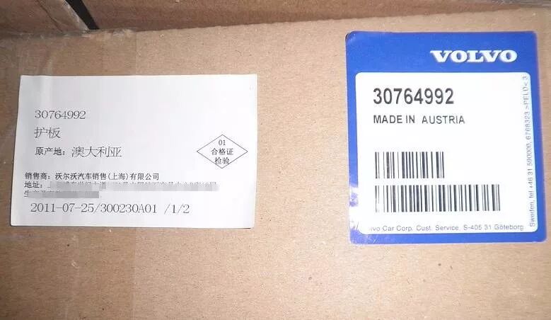 比如沃尔沃护板,在外包装上和护板上均有“VOLVO”的标识。