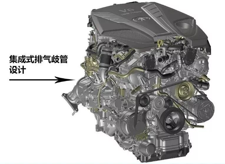 这就是前面说凯迪拉克LGX时说道的集成式排气歧管设计,严格来说这也不算是一项节油取向的技术,而是一款更有利于热交换的技术。集成式排气歧管是指将歧管集成在发动机气缸盖上,使得发动机更紧凑,能实现排气歧管和冷却液的热交换。这项技术算是未来内燃机的趋势,然而日产早在2015年就率先将其放到了VR30DETT身上。