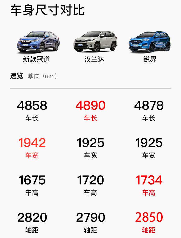 冠道直接竞争对手就是汉兰达、锐界等等,轴距达到2820mm的冠道在后排空间方面是有领先优势的。