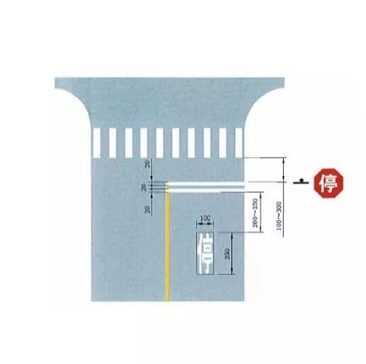 停车让行线为两条白色实线,通常与“停车让行”的标志配合使用,车辆行驶到该地点时,应当在停车让行线以内停车观望,确保安全后才准许通行。