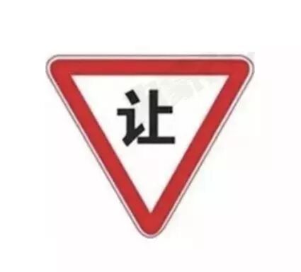 三角形里面一个“让”字,表示减速让行。车辆驾驶人看到这种标志时,必须慢行或停车,观察主路的行车情况,在确保主干道车辆优先并确保安全的情况下才可以继续行进。此标志设在实现良好的交叉口道路的次要路口,比如通往国省道的农村道路路口。