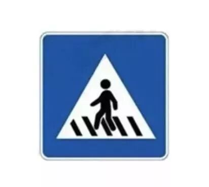 蓝色背景的图标指示标志,主要是告诉行人和驾驶人,该处为专供行人横穿马路的通道,行人可从此过街,驾驶人应当减速让行。这种标志一般设在人行横道的两侧。