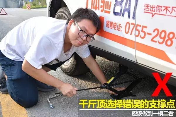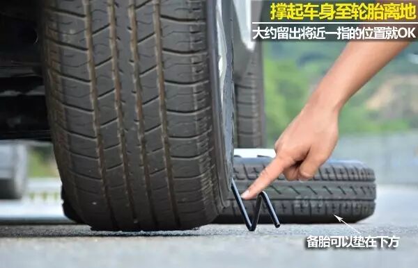 使用千斤顶升起车身的速度不要过快,以免由于支撑不稳而发生车辆从千斤顶上滑落的危险情况。将车身撑起至轮胎离地,大约留出将近一指的位置既可将所有的螺栓拧松拆下,别一来劲就升到很高,免得之后装轮胎的时候麻烦。