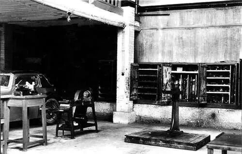从上图的老照片中可以看到,在宽敞的修理厂房内停着十来辆待修的豪车,依稀还可辨认出停放着福特、别克、林肯、凯迪拉克、奔驰等全球知名品牌。