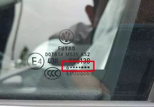 整车最难读的就算是玻璃的生产日期了,所以大家要仔细看。首先说一下,玻璃跟轮胎一样,只有生产年月。在这里讲两种,第一种它是由黑点和一个数字组成,数字代表的是它的生产年份最后一位,上图中1对于10年之后产的车就是11年,在2010年之前产的车就是01年。如果黑点在数字前面,则为上半年生产的,用7减去黑点的个数就是月份,最多只有6个黑点,也就是1月。在数字后面,则为下半年生产的,用13减去黑点的个数则为月份,像图中的就是13减2,11年11月生产的。