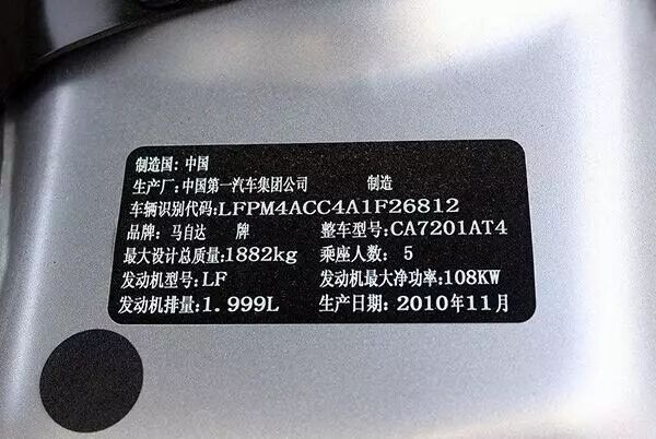 车身铭牌是在副驾驶打开车门的B柱位置,这是车辆的“身份证”,车辆的最基本信息都在上面,所以可以很明确的看见车辆的出厂日期。