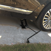 第二步:取出千斤顶,使用千斤顶摇杆顺时针转动千斤顶至合适高度。