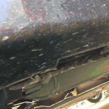后轮胎处千斤顶位置如上图所示(请注意观察,此位置有两块钢板结合,将钢板卡在千斤顶的卡槽里,用手触摸可摸到该处钢板突起)。