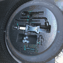注意!!15款车主在取下备胎压板时注意不要将备胎压板黑色的橡胶隔垫遗留在轮毂上,以免导致轮胎安装后扭矩过大,造成螺栓断裂。