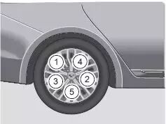 第八步:按照如下图所示的顺序,使用车轮扳手交叉紧固车轮螺母,确保每个螺母紧固两遍;(1→ 2→3→4→5)