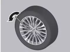 第二步:如果需要,拆下轮毂装饰盖。拿出车轮螺母扳手,将需要更换的轮胎的车轮螺母都逆时针转动松开;(大约转动360°,但是先不要拆下螺母)(注意:拆下车轮螺母时应使用扳手交叉松开车轮螺母,单边松螺栓容易造成螺栓滑牙)