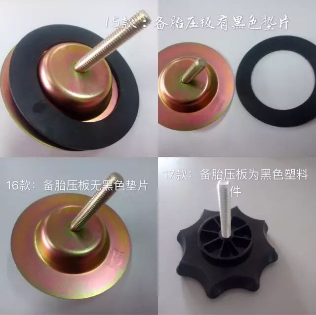 15款、16款和17款博瑞的备胎压板锁紧旋钮是有区别的,具体区别见下图: