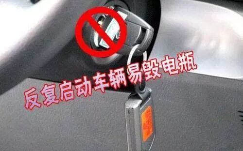每次启动发动机时,不要超过3秒。如果第一次启动失败,这时候不要急于反复启动。连续启动电动机肯定会造成电瓶过度放电而受损,因此,再次发动时的时间间隔应超过5秒。