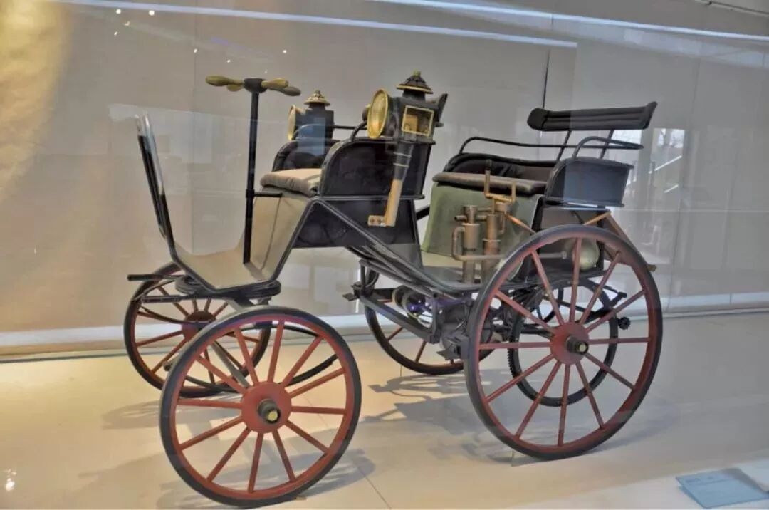 1883年8月,戴姆勒发明了世界上第一个单缸四冲程发动机,这种发动机正是利用一种高压缩比汽油作为燃料供应的。1886年,他又将这台发动机装在了四轮马车上,不过取消了马,仅保留了车体部分,这就是世界上第一辆四轮燃油车。