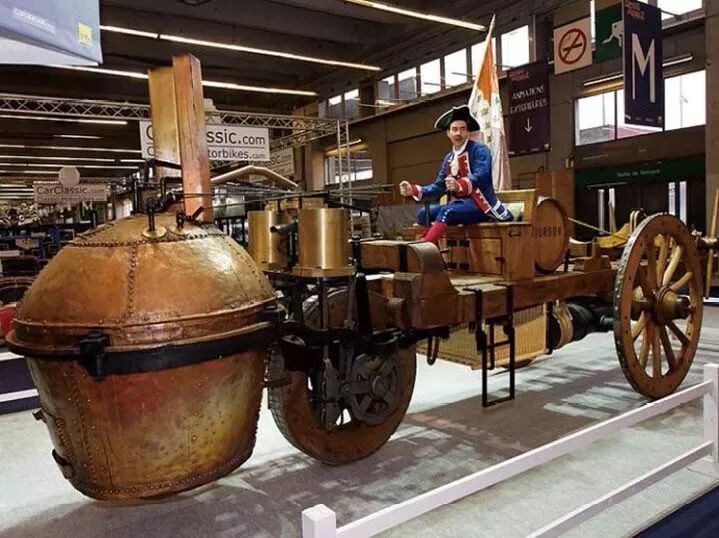 第一辆可以完全依靠自身动力行驶的蒸汽汽车是在1769年由44岁的法国陆军技术军官尼古拉斯·古诺制造的。