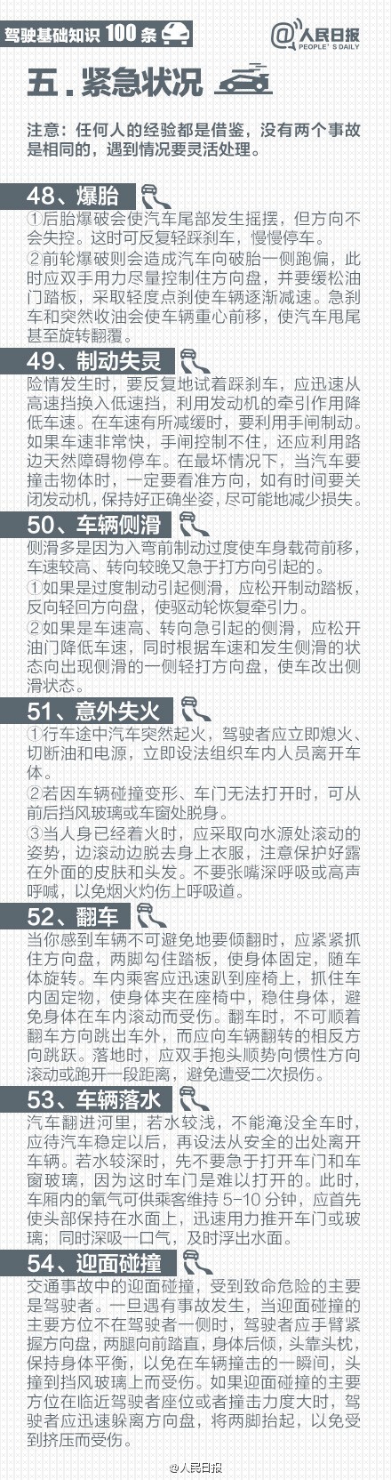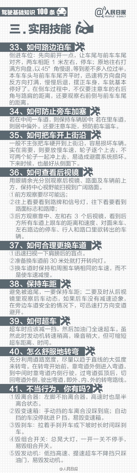 开车出行,安全驾驶是第一。为你总结:安全行车基本习惯、实用技能、省油窍门、保养招数、不同路况行车技巧、紧急情况处理办法……戳图学习↓↓让你快乐出行!为了安全,速速转发收藏!