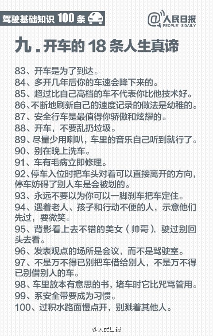 驾车必看的100条常识,驾校学不到!