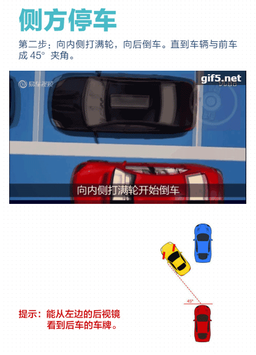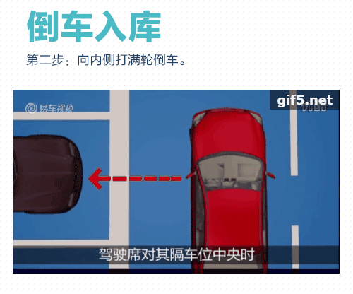第二步:做好以上准备后,向内侧打满轮后开始倒车。