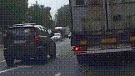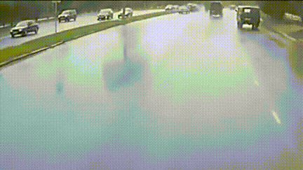 ⬆️堵车的时候如果你后方没有排起很长的队伍,那就时刻注意着后视镜。图中小车司机就是榜样,及时发现后面失控的卡车并躲开了事故。否则后车极有可能将它挤成废铁。