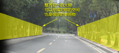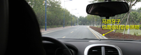 驾驶时要学会寻找路上合适的参照物,辅助驾驶员让车辆保持直线行驶。