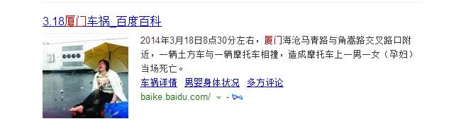 2014年3月18号,厦门海沧马青路与角嵩路交叉路口附近,一辆土方车和一辆摩托车相撞,造成摩托车上一男一女(孕妇)当场死亡。这也是近几年来厦门发生的最为惨烈的一场车祸。