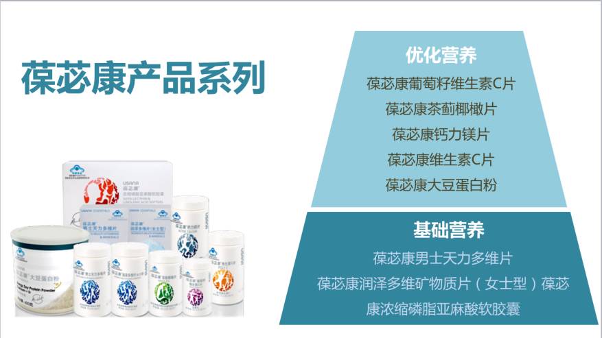 《世界营养宣言》指出:全球有20亿以上的人(主要是妇女和儿童)都可能患有一种或多种营养素缺乏症。在中国,某些营养素缺乏十分普遍。孕期、儿童期的营养状况会影响孩子一生的健康和智力水平!孕前、孕期及儿童期,应关注基础营养补充,为未来健康奠定坚实的基础。 (二)针对家庭成员的营养保健——葆苾康系列。 医学研究指出,良好的营养和长期健康有着牢不可破的关系。现代社会,我们的饮食都偏向种类单一,高糖高脂,这说明我们都吃得太饱,但营养未必均衡。这种饮食现状,导致成人代谢性疾病增多。随着时间推移,肥胖和血糖控制不良人群增多,成为激发许多疾病的风险因素。 因此,每天补充一些饮食中缺失或不足的维生素和矿物质,及有抗氧化作用的基础营养素,是让身体呈现更优健康状态的有效途径之一。