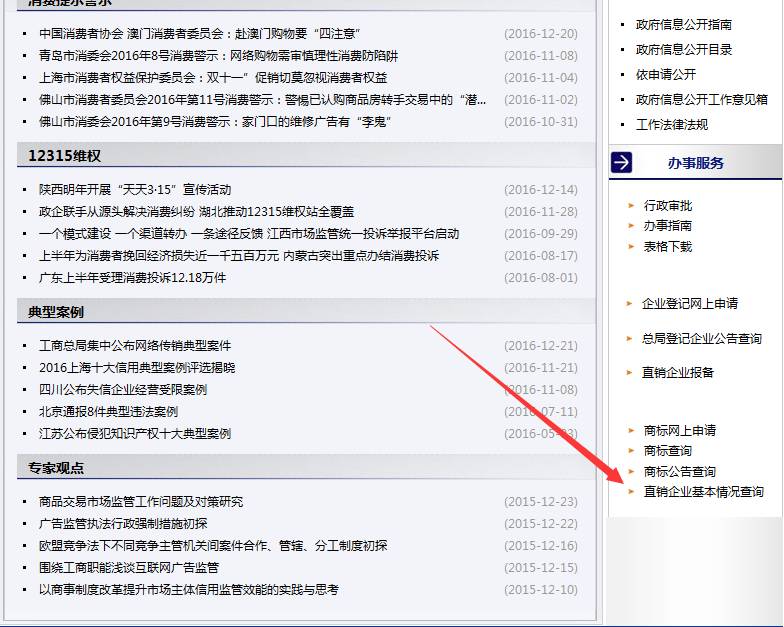 步骤二:公众服务 步骤三:右下角,直销企业基本情况查询