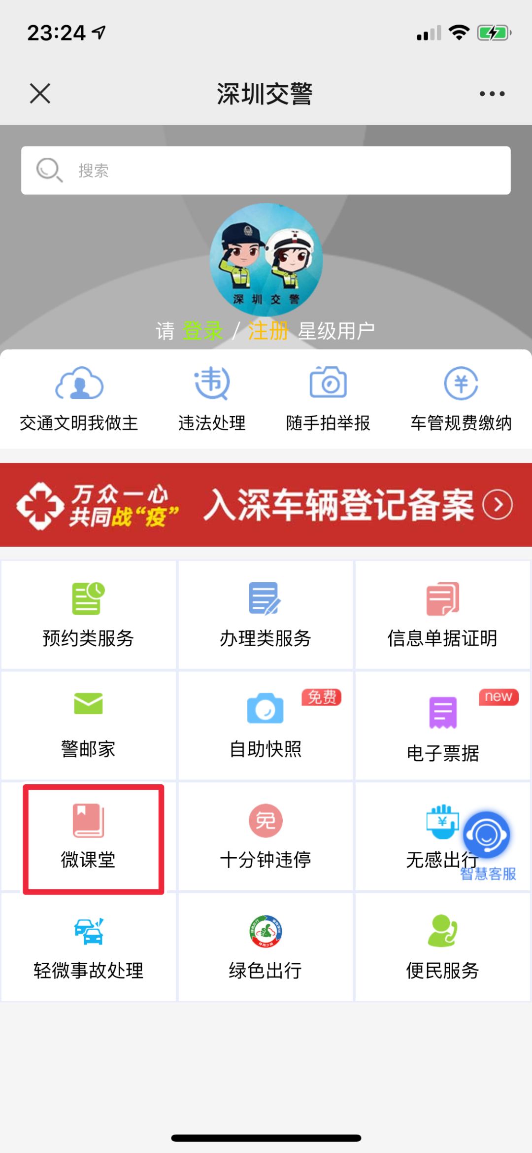 深圳:关注“深圳交警”公众号-星级用户-微课堂-学法减分