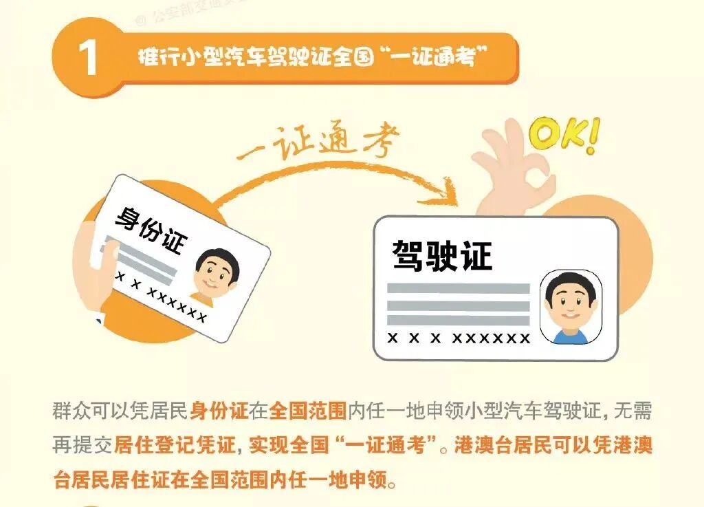 对于在外地上学或者工作的朋友来说,考取驾照一直是一个难题。之前异地学车考取驾驶证很多地方需要提供居住证,这一次简化手续后,异地考驾照只需要提供身份证即可,而且是全国通办。