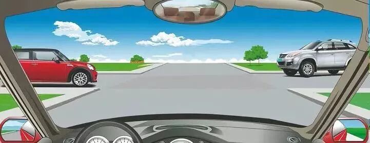 第5题:在没有信号指示灯的三叉路口直行时,遇到这种情况该如何通行?