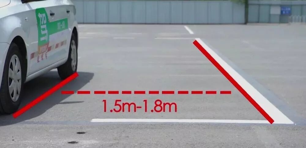 通过后视镜观察车身与库区左前角线距离,做调整入库