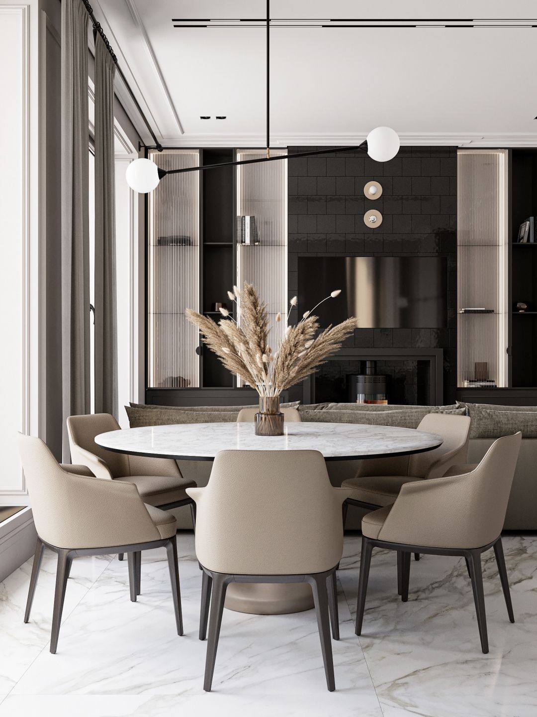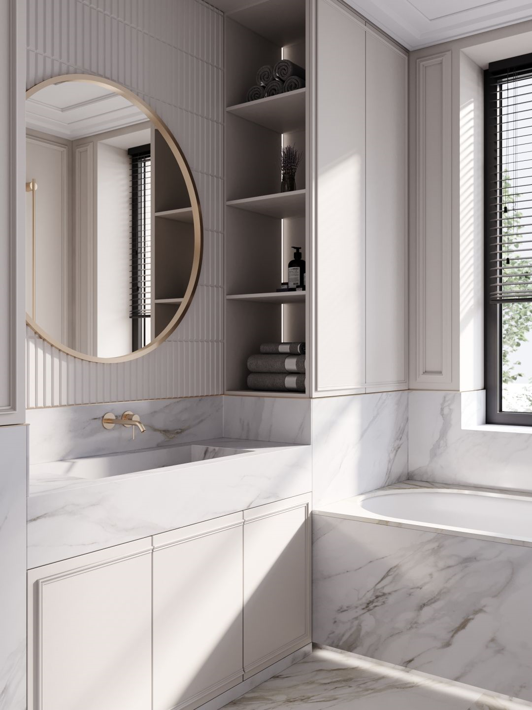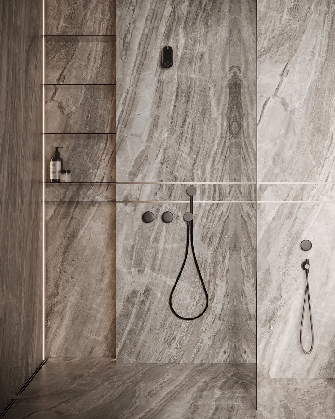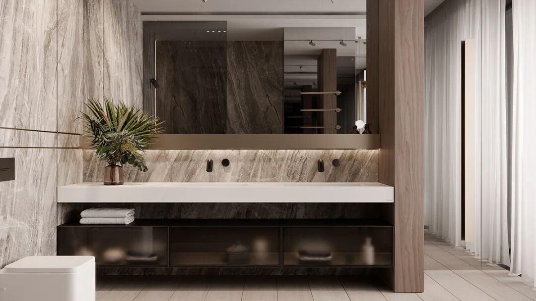 大理石和胡桃木自然衔接,丰富的自然肌理呈现简洁流畅的美感。