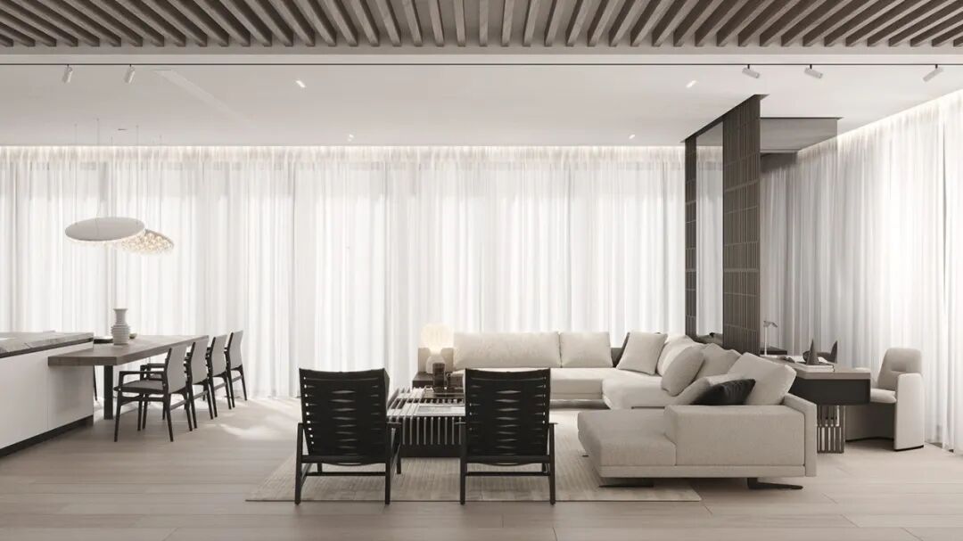 简约现代的风格、开放式布局、浅色系空间,以及隐藏其间的装饰线条......高阔的空间氛围由此而来。
