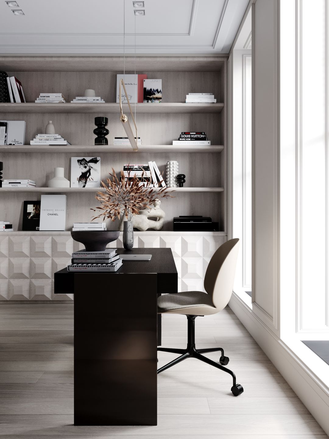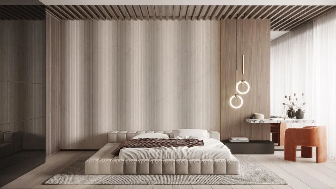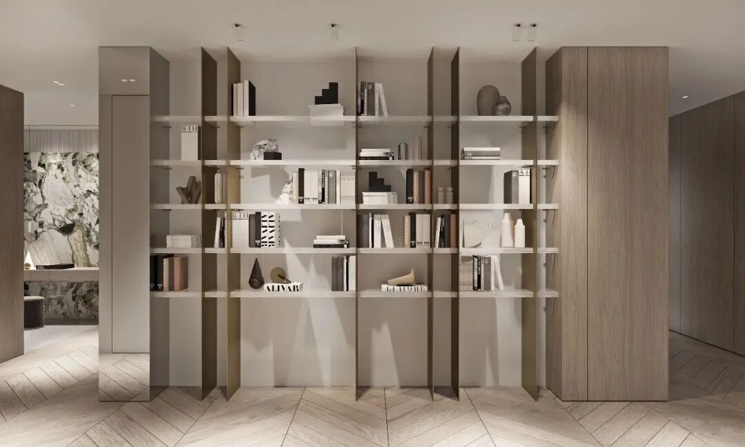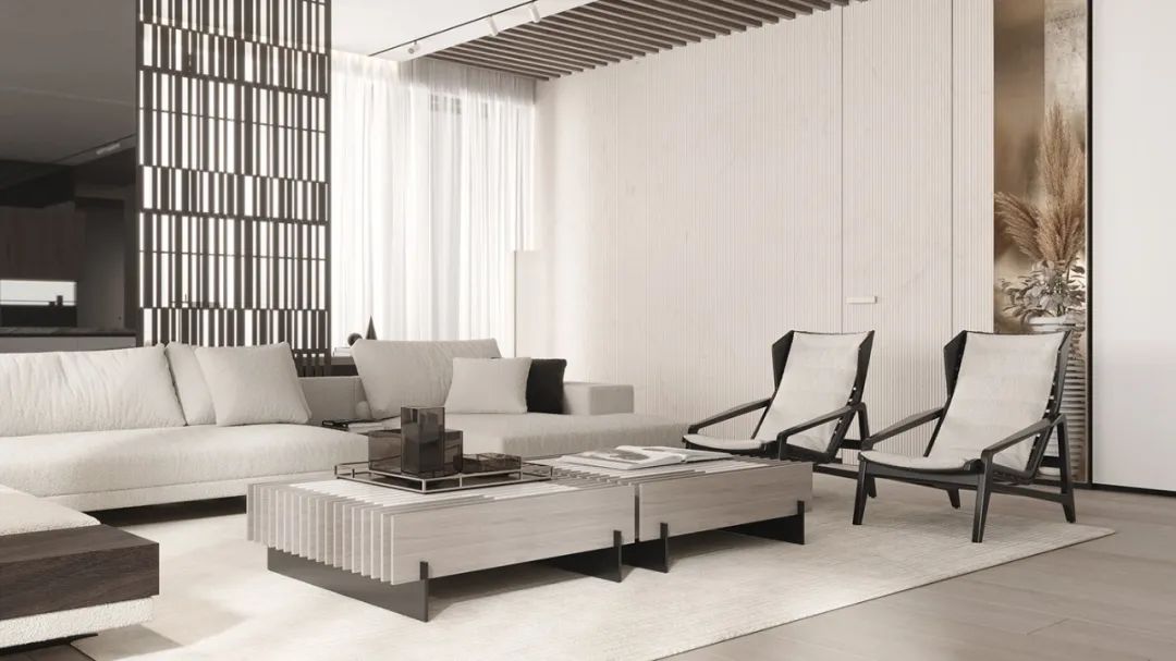 横平竖直的线条连接成面,能够增强空间的平衡感和纵深感,横向阔远,纵向拔高,为空间创造妙不可言的精致度。