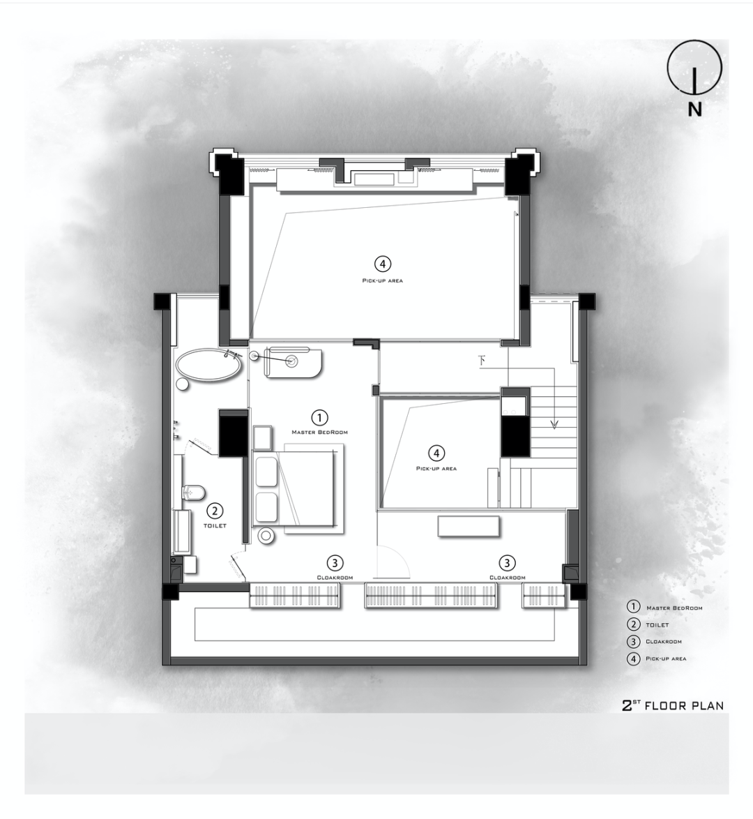 这里囊括了耿波休息、洗浴和储物的功能需求,不同于一楼活络的共享氛围,二楼被注入米白和浅灰的静谧色调。