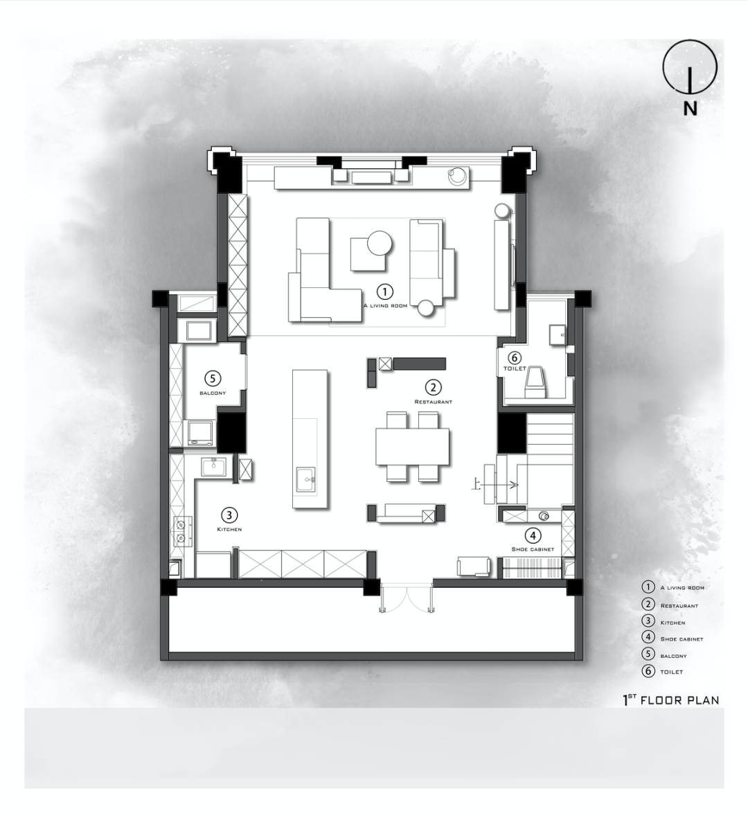 眼前开阔的立方体来自两套被完全打通的相邻挑高跃层,厨房、生活阳台、楼梯和客卫这样的功能空间被藏在了立方体的两边,从而最大程度的保留空间的开敞规整。