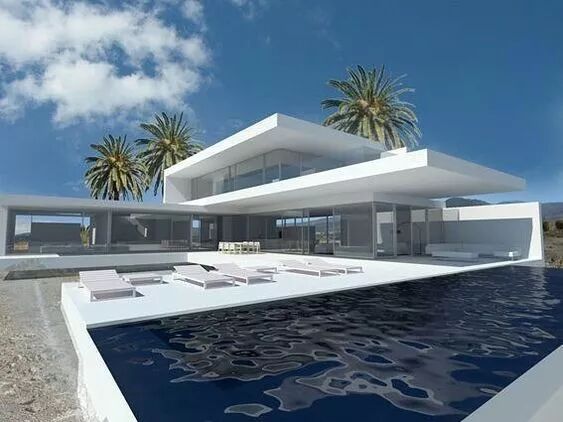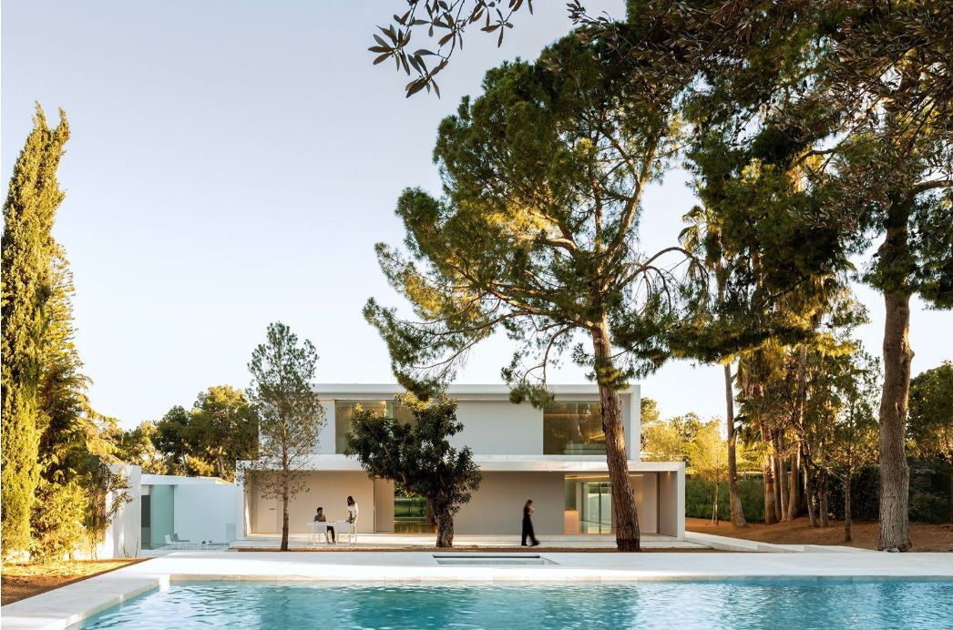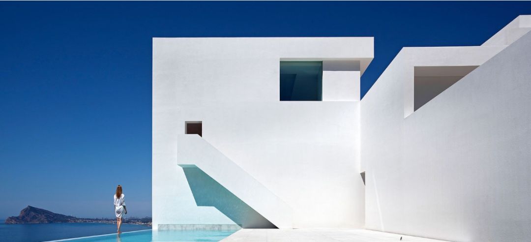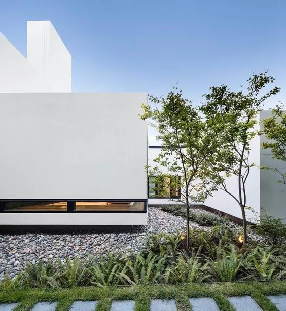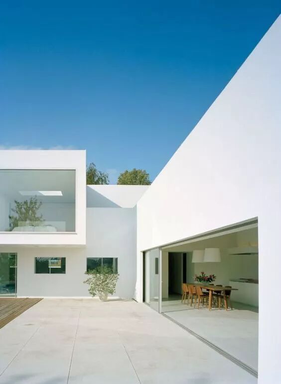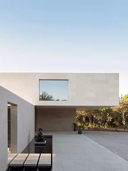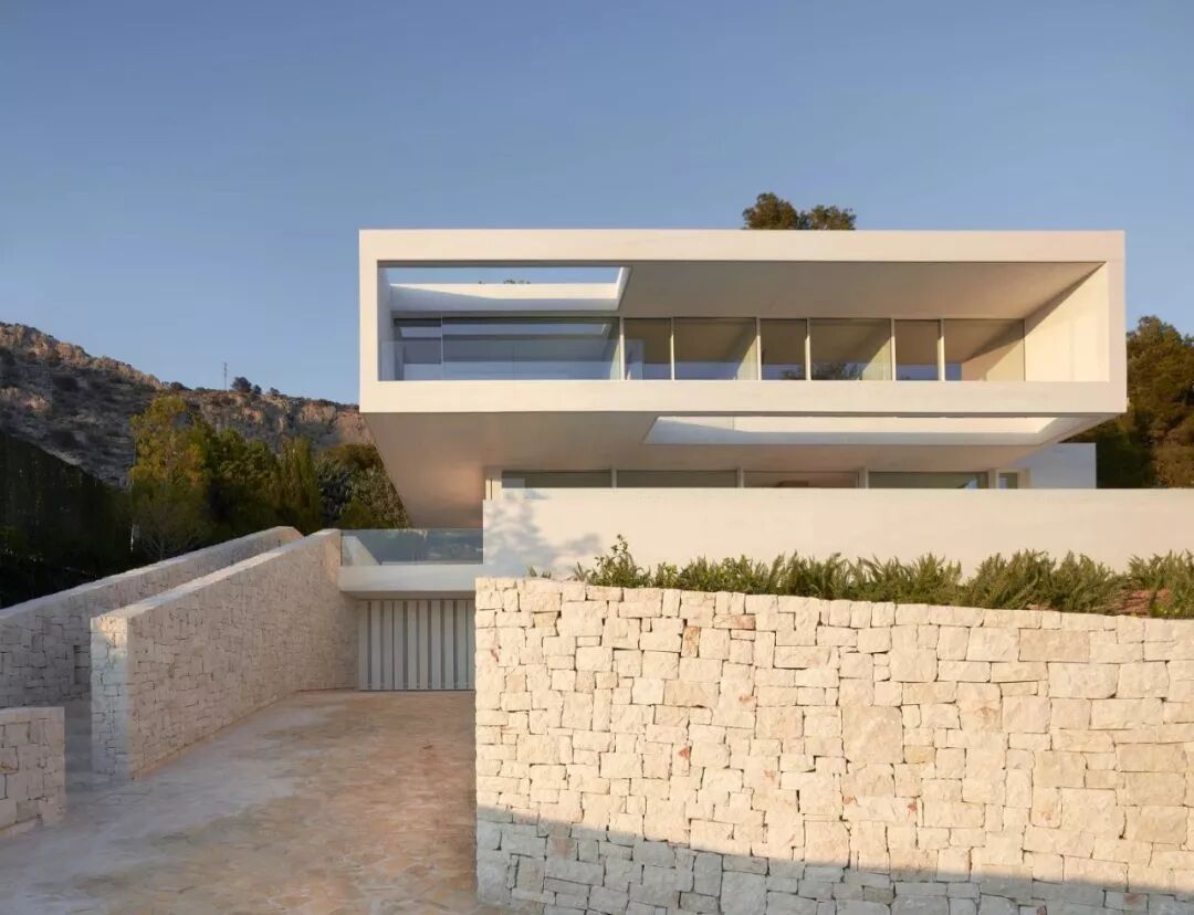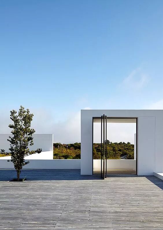 没有复杂的线脚 简简单单的一面白墙 通过不同体块之间的穿插组合 营造出开敞舒适的室内外空间 以少胜多,以简胜繁