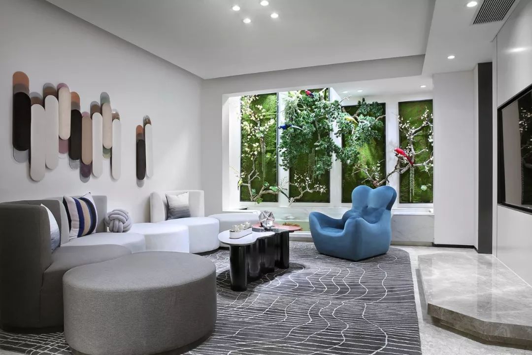 三米阳光穿透空间刚好照耀在地下层的生态区,景观的纳入为影视娱乐区增添了一份户外自然的感觉,配合活泼随意的家俱,让人置身其中感受到轻松与活力。
