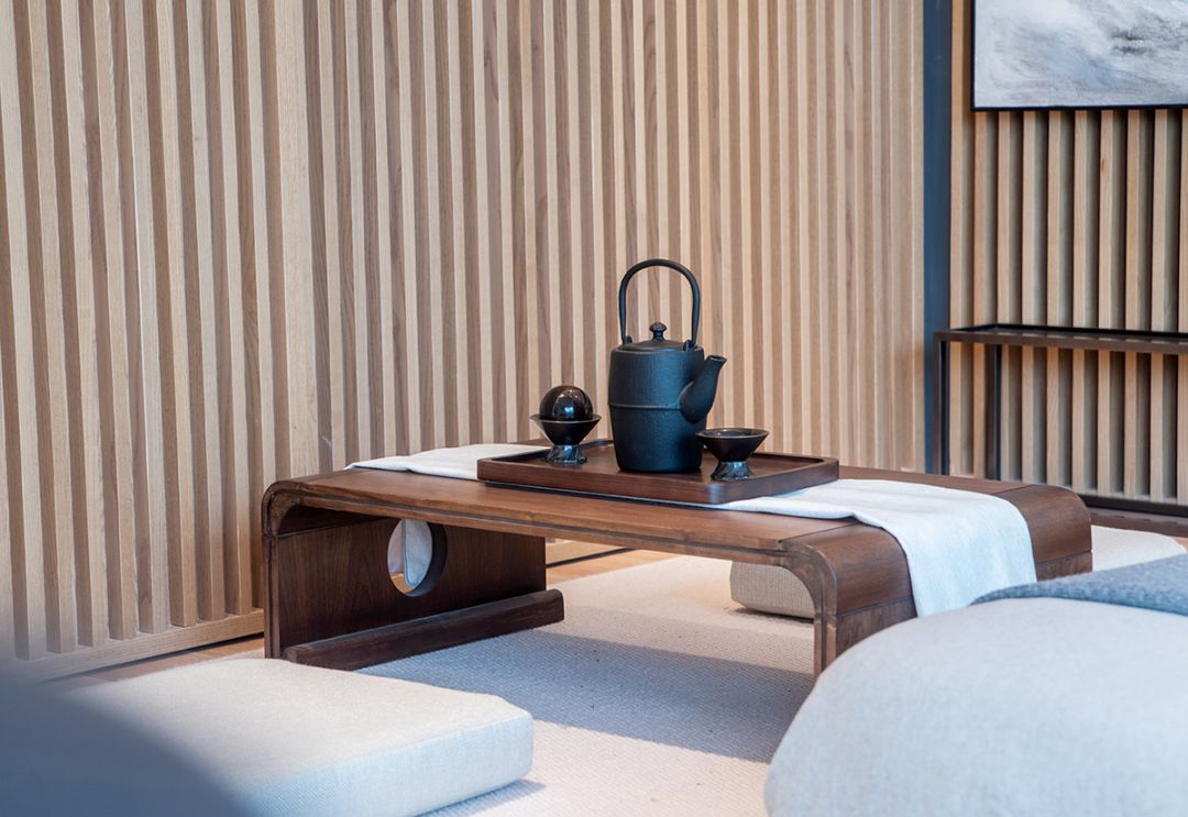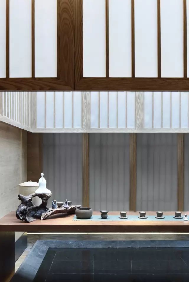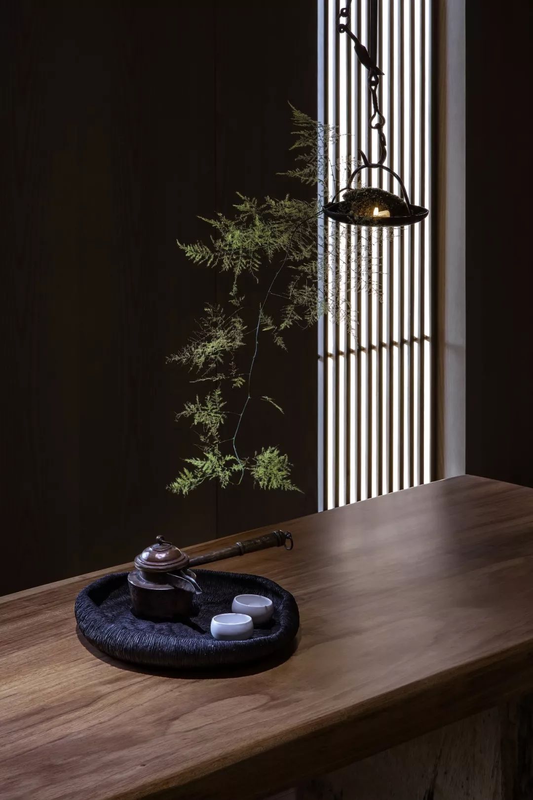 茶室选材尽可能的以自然材料为主,如竹、木、石等,环保质朴又能带来大自然的气息,这些天然材料不会因为时间而过时,而是“越旧越有味道”。
