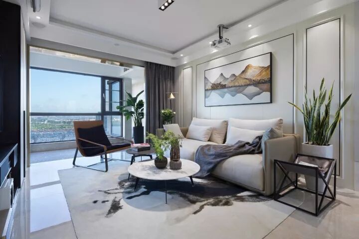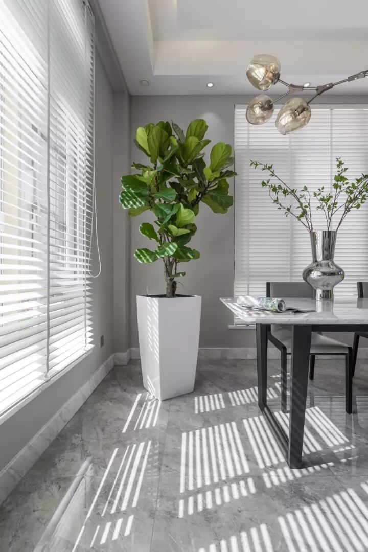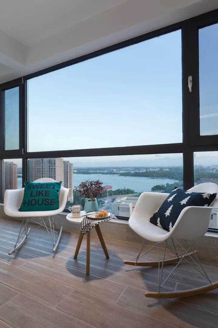 些许深色,让出尘的空间增添了几分烟火气息。梦总会醒来,生活不是一尘不染,深浅过度,避免单一的乏味,虚实结合,黑白相间,干净利落,轻重对比,大气磅礴,在光影间,置喧嚣不顾,窗外蓝天白云,窗内绿意和木制,优雅舒适, 生活与自然都美的很轻易。