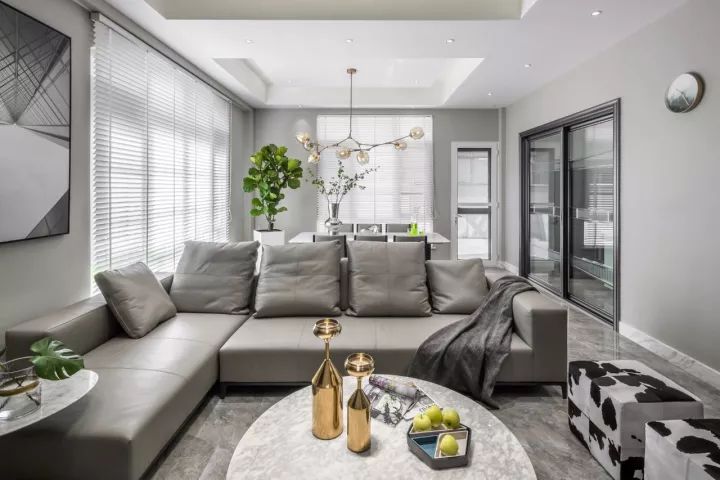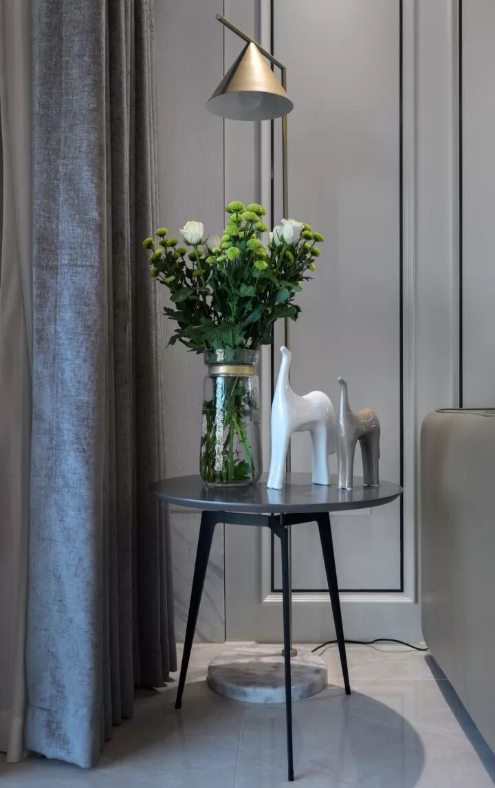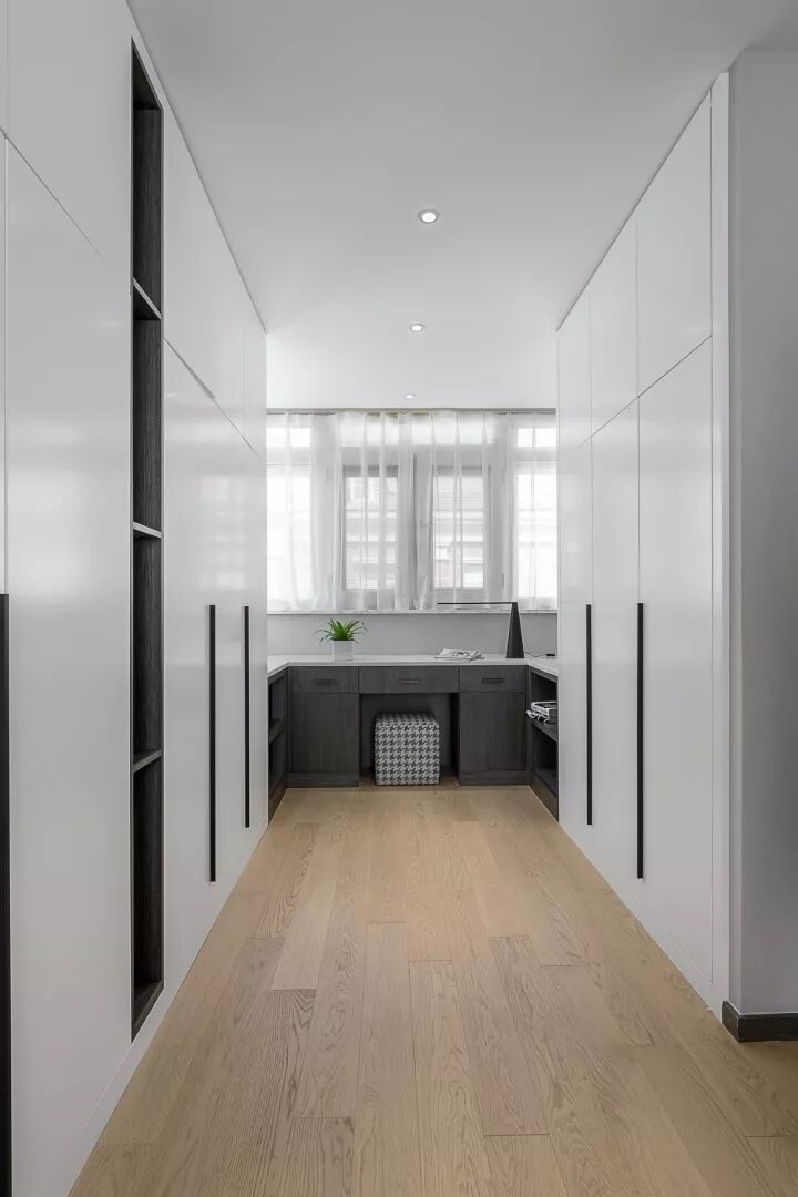 初见便觉空间优雅谦逊、低调内敛,深沉且不张扬,风度翩翩且气质高雅,流畅协调的格局,黑色、白色与高级灰的搭配实现了一种视觉的纯粹感,单纯、饱满且丰富,如同经典的黑白电影。黑、白、灰的演绎,不停留在表面的呈现上,而是空间的内涵和内心的一种追求。
