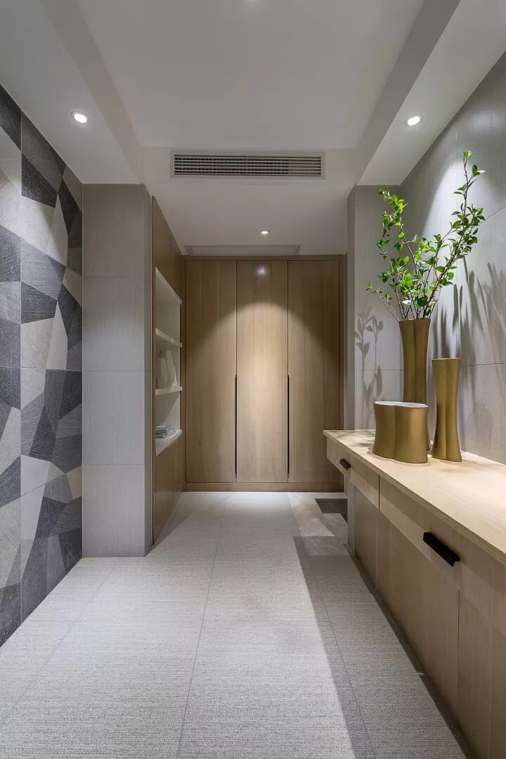 大理石的冷峻,理性中带着自然纹路。木制温润,简约的造型把天然机理裸露,情感中内秀谦和,个性张扬,搭配绿色生命,满屏生机,充满春意。卫浴空间,用简单的形式,赋予灵性的声音,每天与自己对话,或者裸露的肉体,或者贴近的灵魂。