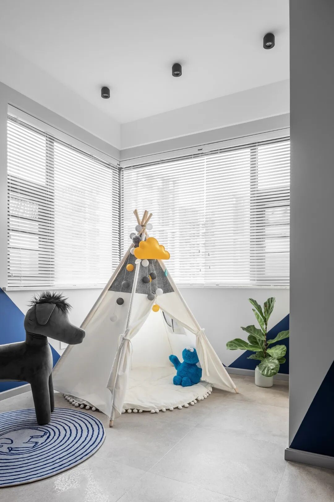 儿童房围绕着4岁的小朋友的生活进行设计延展,可变性贯穿着整个空间使其充满着无限童趣。