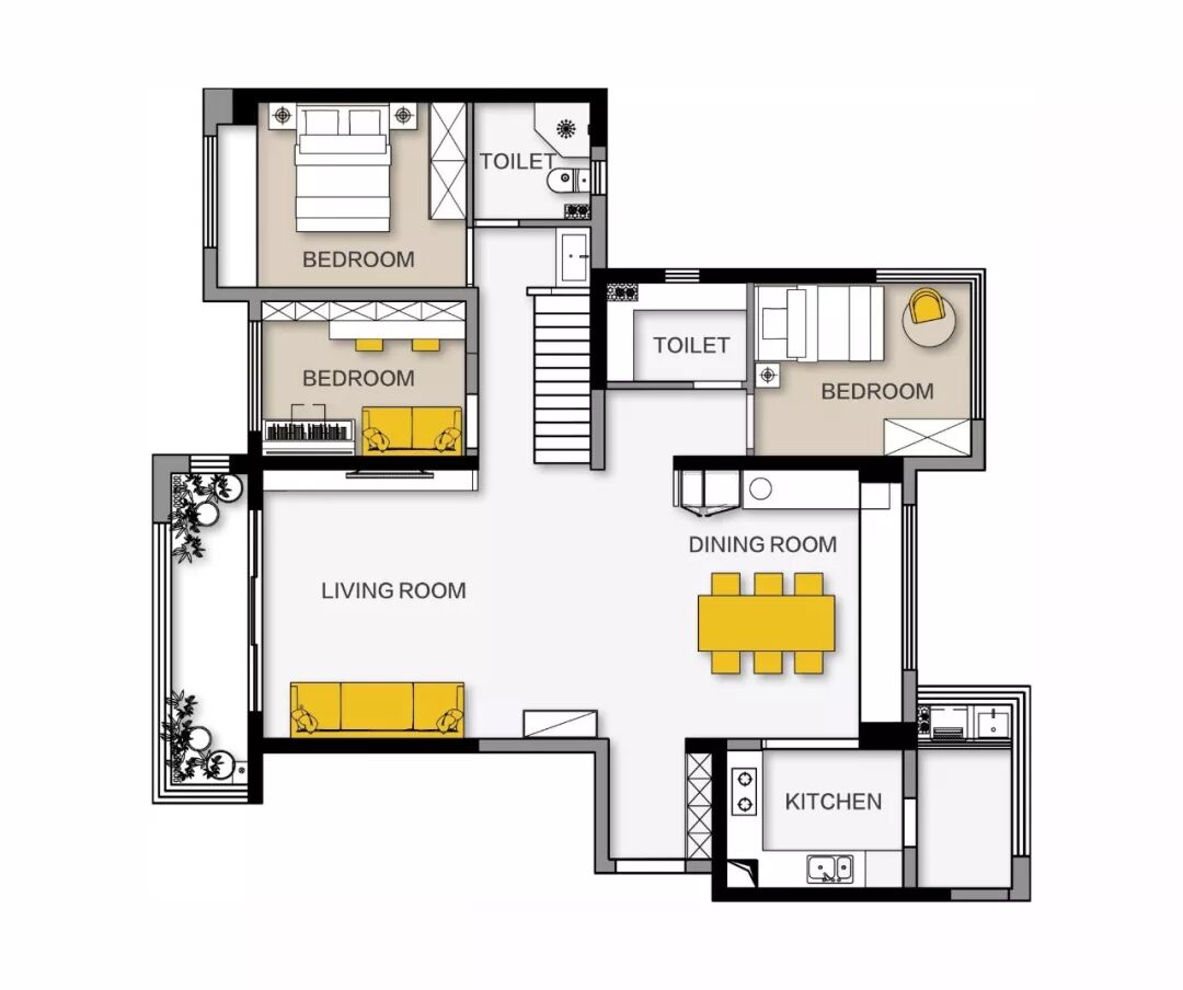 楼梯区域底部空间浪费;