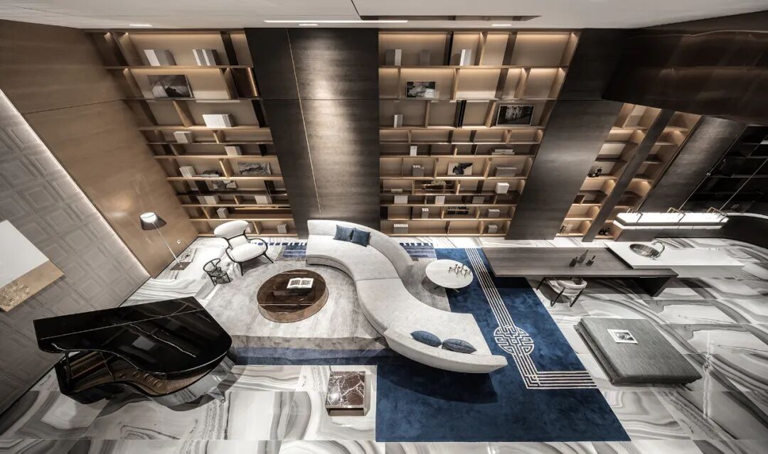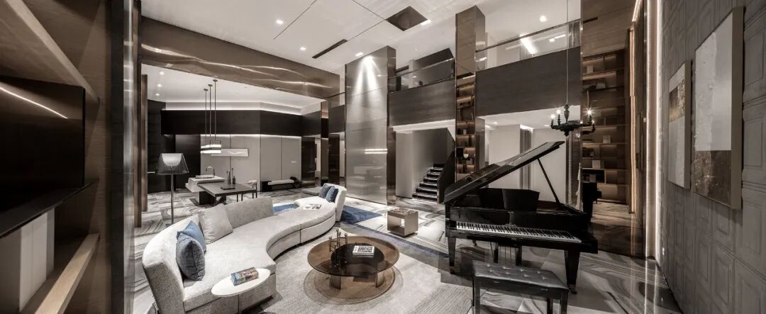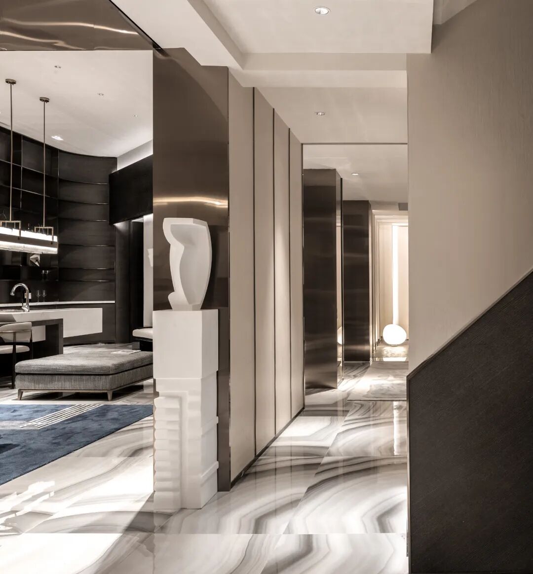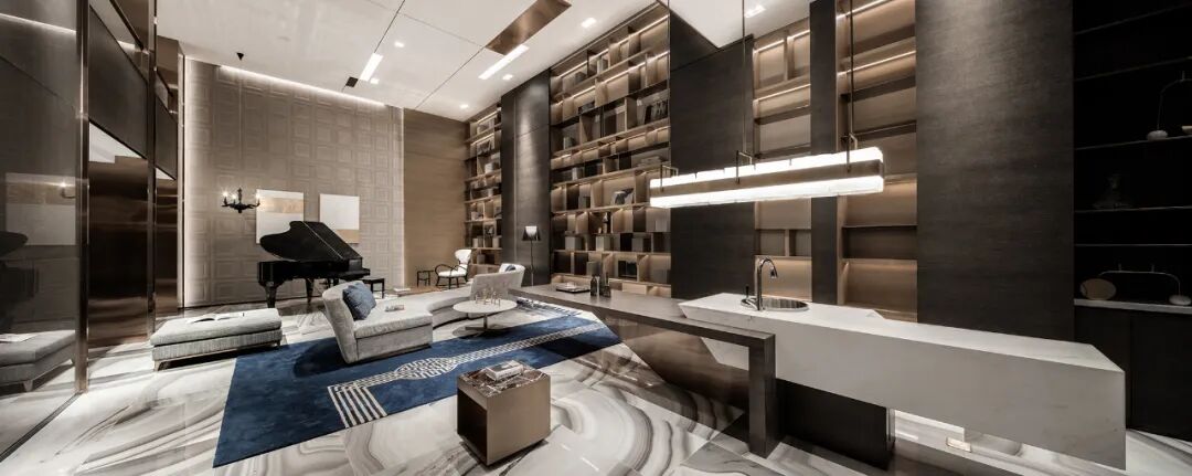人性化设计给空间带来更多灵活性和交互感,水吧台与桌子的几何拼贴脱胎于“新造型主义”,S形对角沙发却融入了古典浪漫与极致优雅。